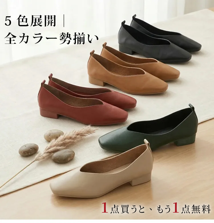幅広 甲高 痛くない 本革 Vカット スクエアトゥ パンプス 2.5cmヒール 走れる 柔らかい 牛革