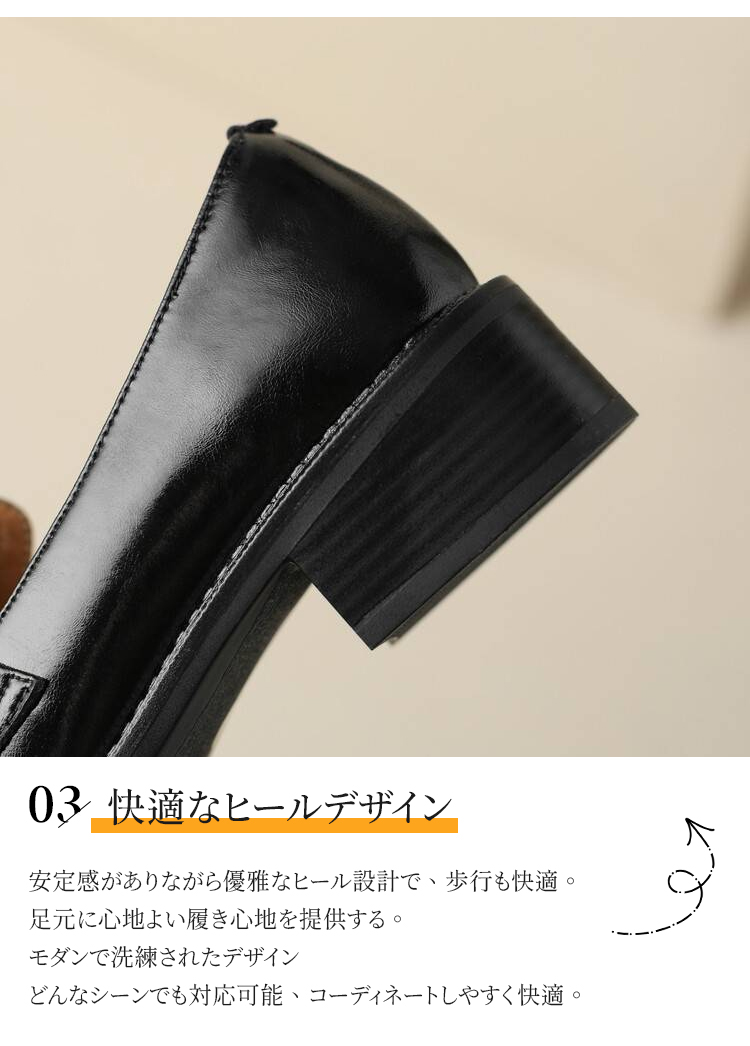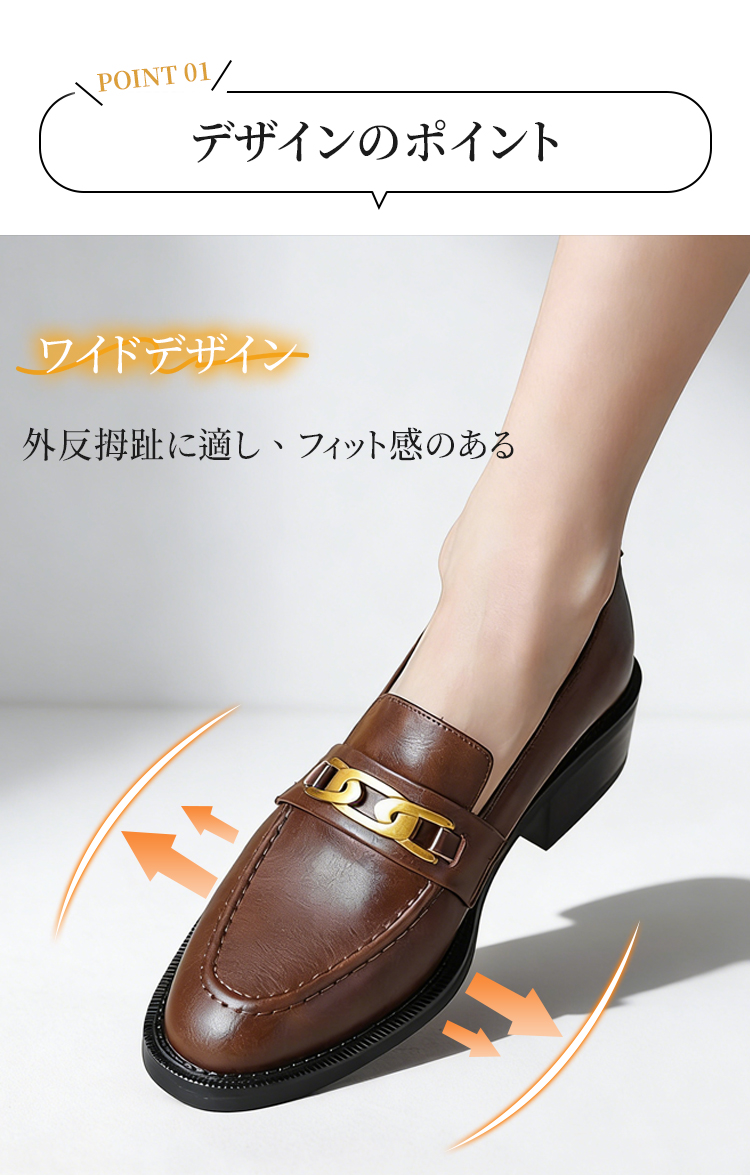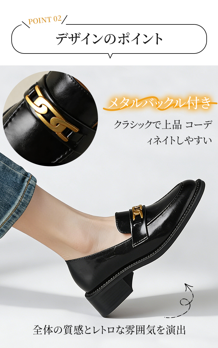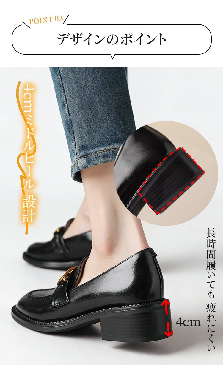 本革ビットローファー レディース 4cmミドルヒール 外反母趾対応 ワイド設計 通勤