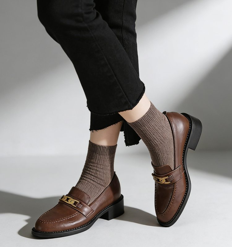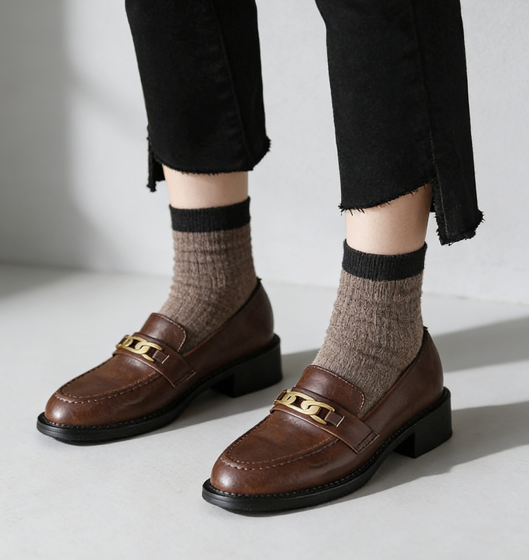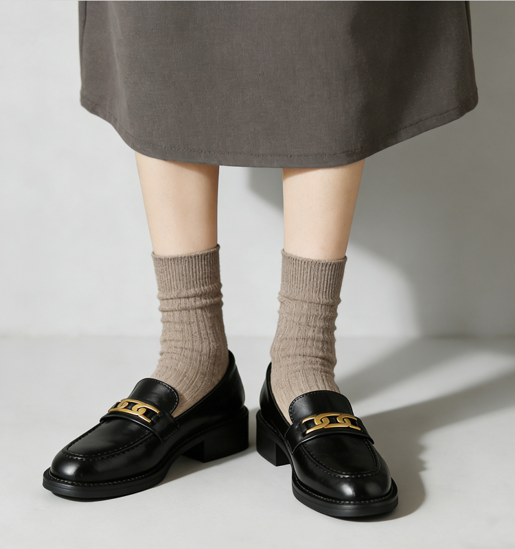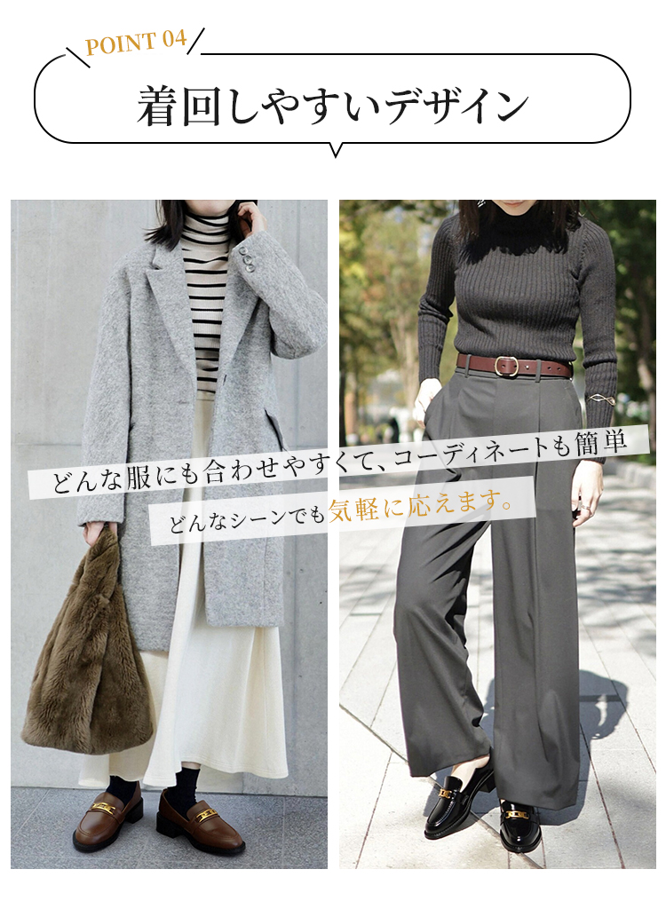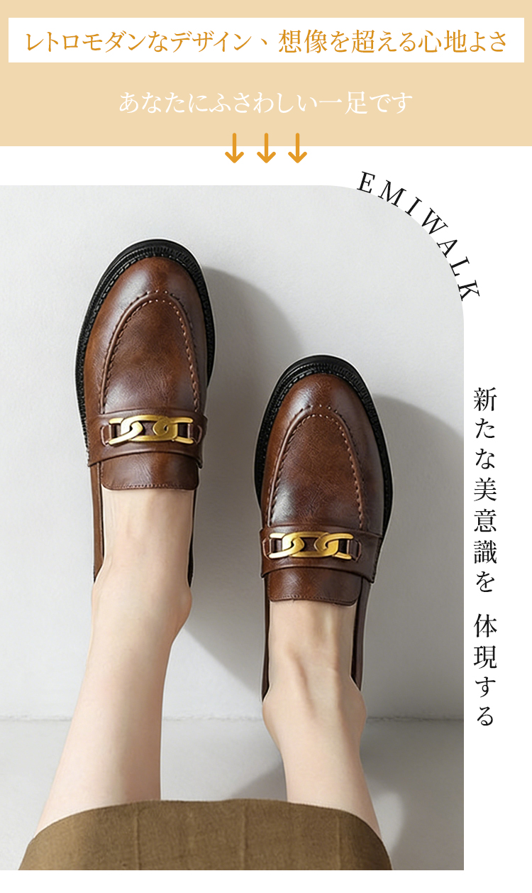 本革ビットローファー レディース 4cmミドルヒール 外反母趾対応 ワイド設計 通勤