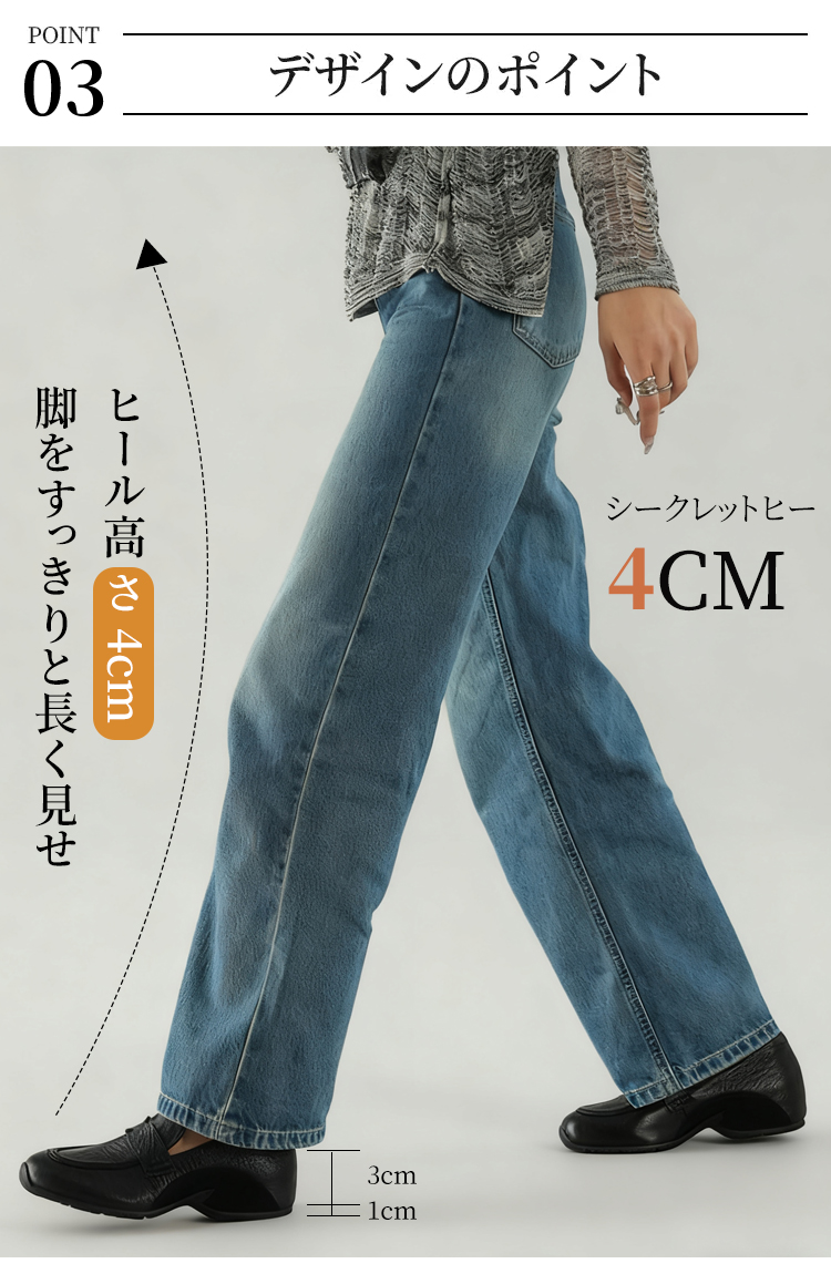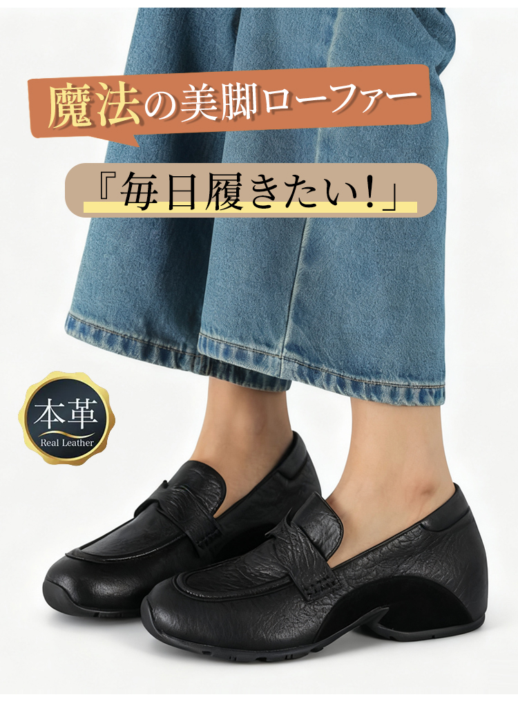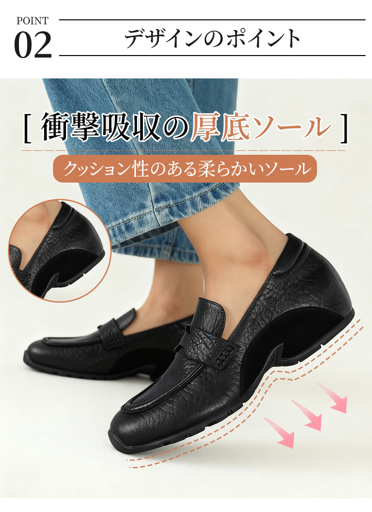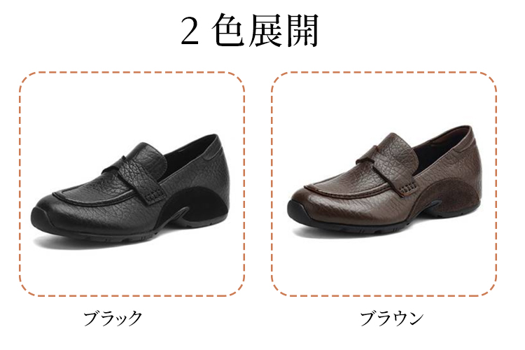 本革ヒールアップ厚底ローファー 4cm身長盛れる 衝撃吸収 柔らかソール スリッポン