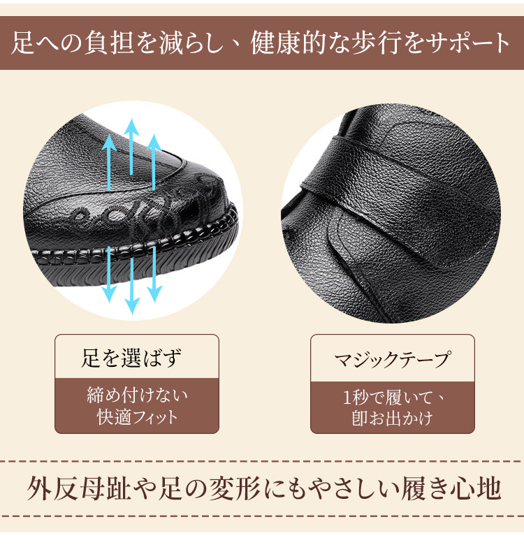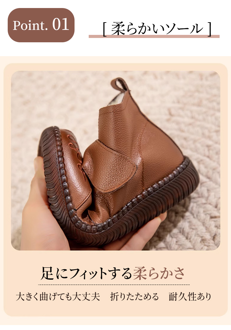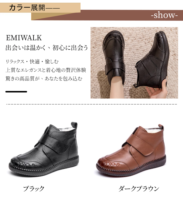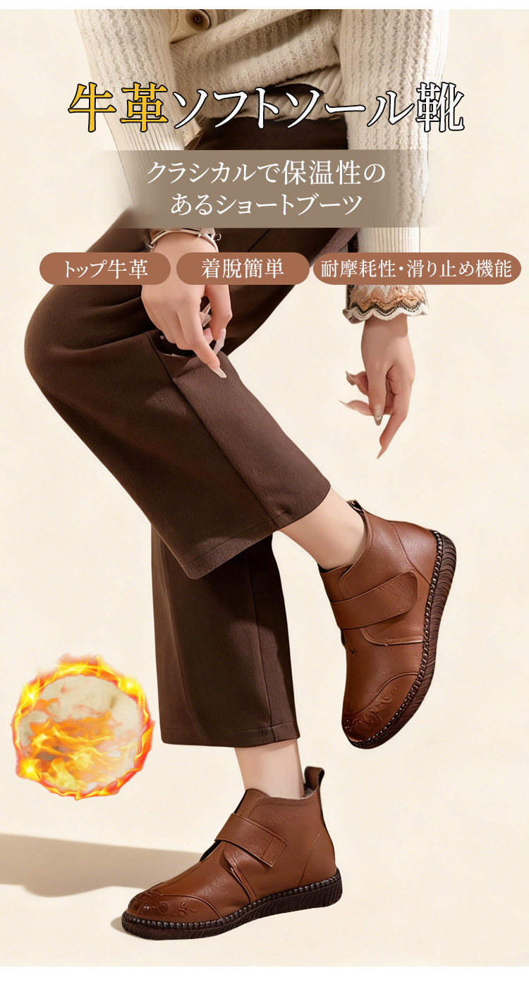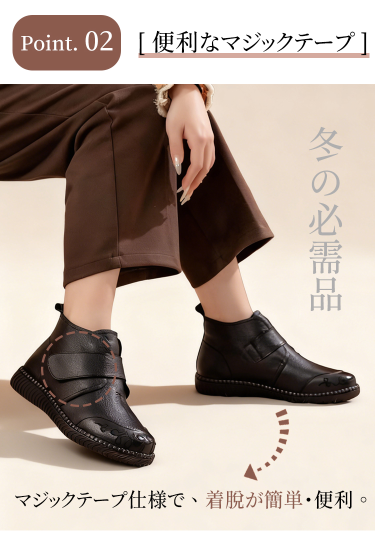 本革ウール裏起毛コンフォートブーツ マジックテープ仕様 外反母趾対応 防滑ソール